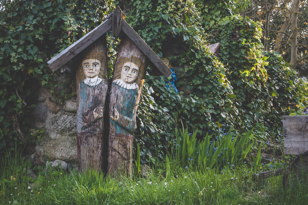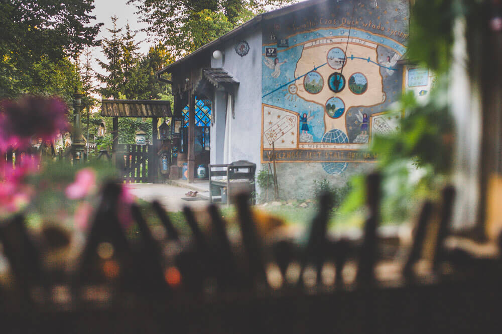 Konstrukcja napędzana siłami natury. Wiatrak łapał w swe łopaty wiatr, a w kubeczki umieszczone po okręgu wpadała woda deszczowa z rynny. Uruchomiony wiatrak wprawiał w ruch tracza - pracownika tartaku, który wykonywał ruch naśladujący piłowanie drewna. Niegdyś tracza z wiatrakiem łączył pas klinowy